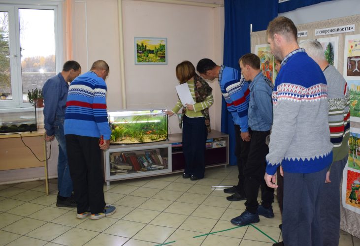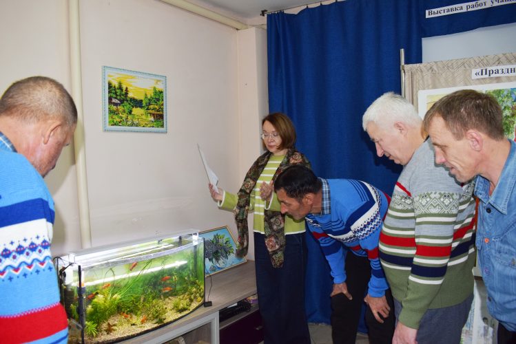 В ходе мероприятия была предоставлена возможность непосредственного наблюдения за рыбками и растениями, включая процесс потребления водорослей. Группа получателей социальных услуг проявила активный интерес к поведению меченосцев, задавая уточняющие вопросы.