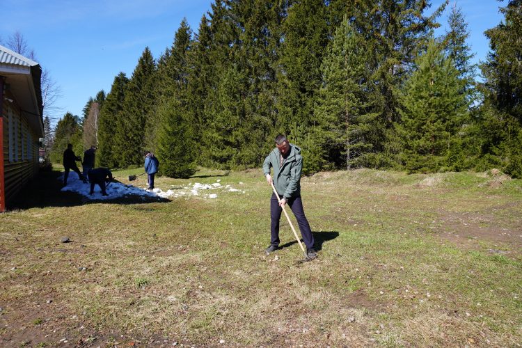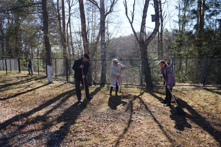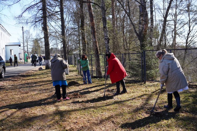 В ходе уборки участники привели в порядок посадки елей по периметру забора: собран крупный бытовой мусор, стеклянные и жестяные банки. Тщательно выгребли прошлогоднюю траву, подмели дорожки от пыли и грязи, а также собрали мелкие камни.