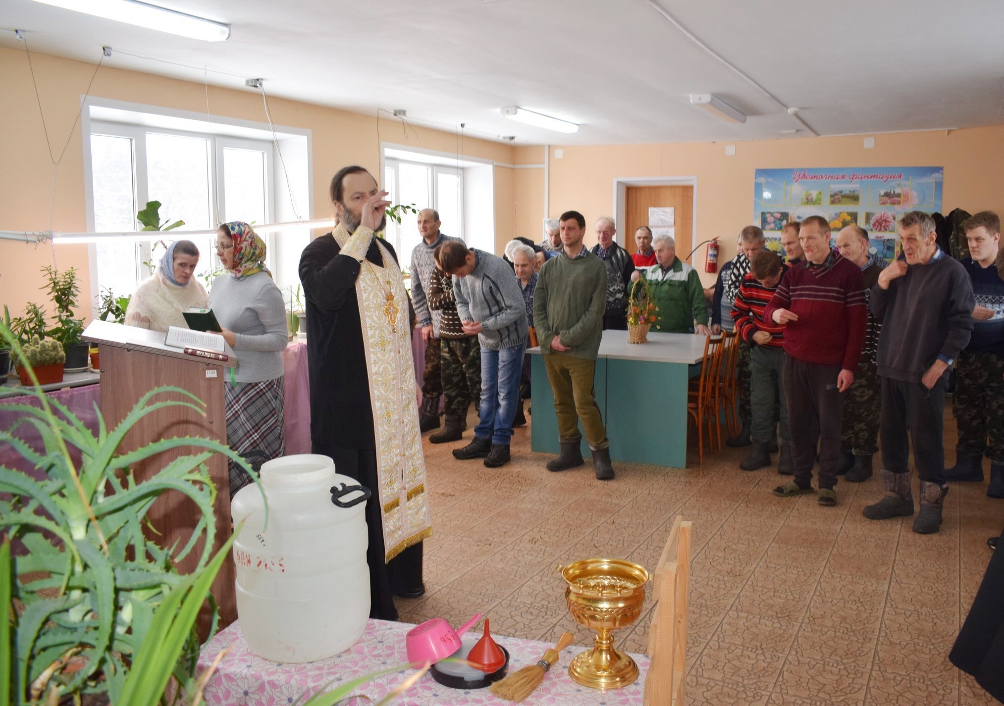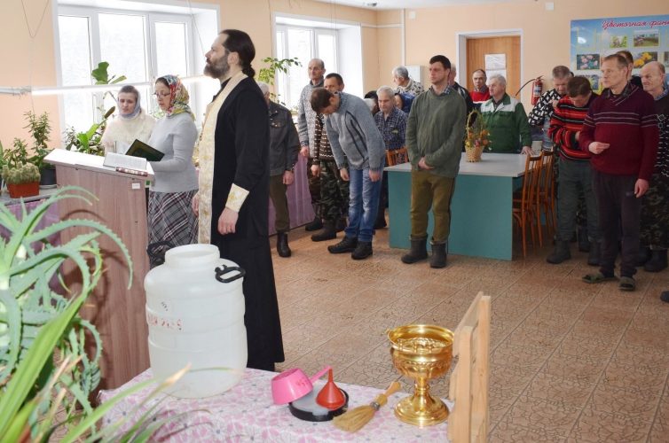 Затем батюшка отслужил водосвятный молебен, по окончании которого окропил всех присутствующих и их жилые помещения святой крещенской водой, которая, по церковному вероучению, дарует благодать и освящение.