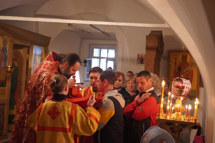 По прибытии в храм жители дома-интерната приобрели свечи и подали записки о здравии на обедню. Главным событием стало достойное участие в пасхальном богослужении. Все присутствующие исповедовались и причастились Святых Христовых Таин, а также поставили свечи у праздничной иконы.