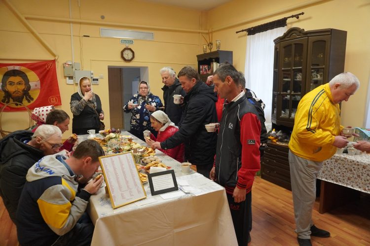 После службы гостей пригласили в церковную трапезную, где они с радостью вкусили угощения и разделили пасхальную радость с прихожанами и настоятелем.