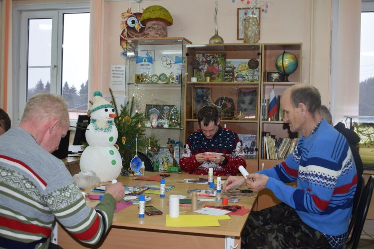 В рамках открытия «Мастерской Деда Мороза» была создана композиция из еловых и сосновых веток, украшенная самодельными игрушками из сушёных долек лимона и шишек. Также была выполнена композиция «Зимний лес» с использованием метода приклеивания пуговиц клеевым пистолетом на картон в форме ёлки, и изготовлены снеговики из лампочек, раскрашенные гуашью. Жители интерната сделали поделку «Новогодняя свеча» из втулки, используя блестящий материал и фольгу, получился новогодний сувенир, которым можно украсить свою комнату.