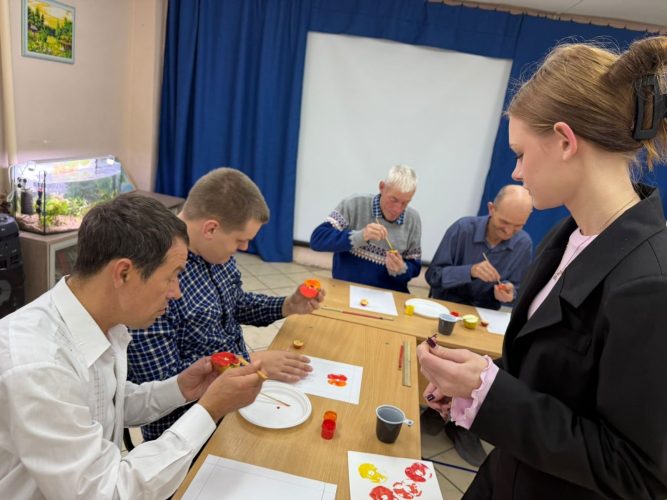 7 октября социальные партнёры из Кинешемского педагогического колледжа провели творческое занятие на тему «Поделки из отпечатков природных материалов» для граждан проживающих в учреждении. Целью мероприятия было развитие творческой активности участников, ознакомление их с нетрадиционными техниками изобразительного искусства, а также развитие мелкой моторики и координации движений.