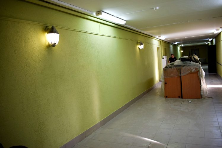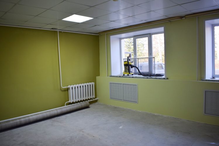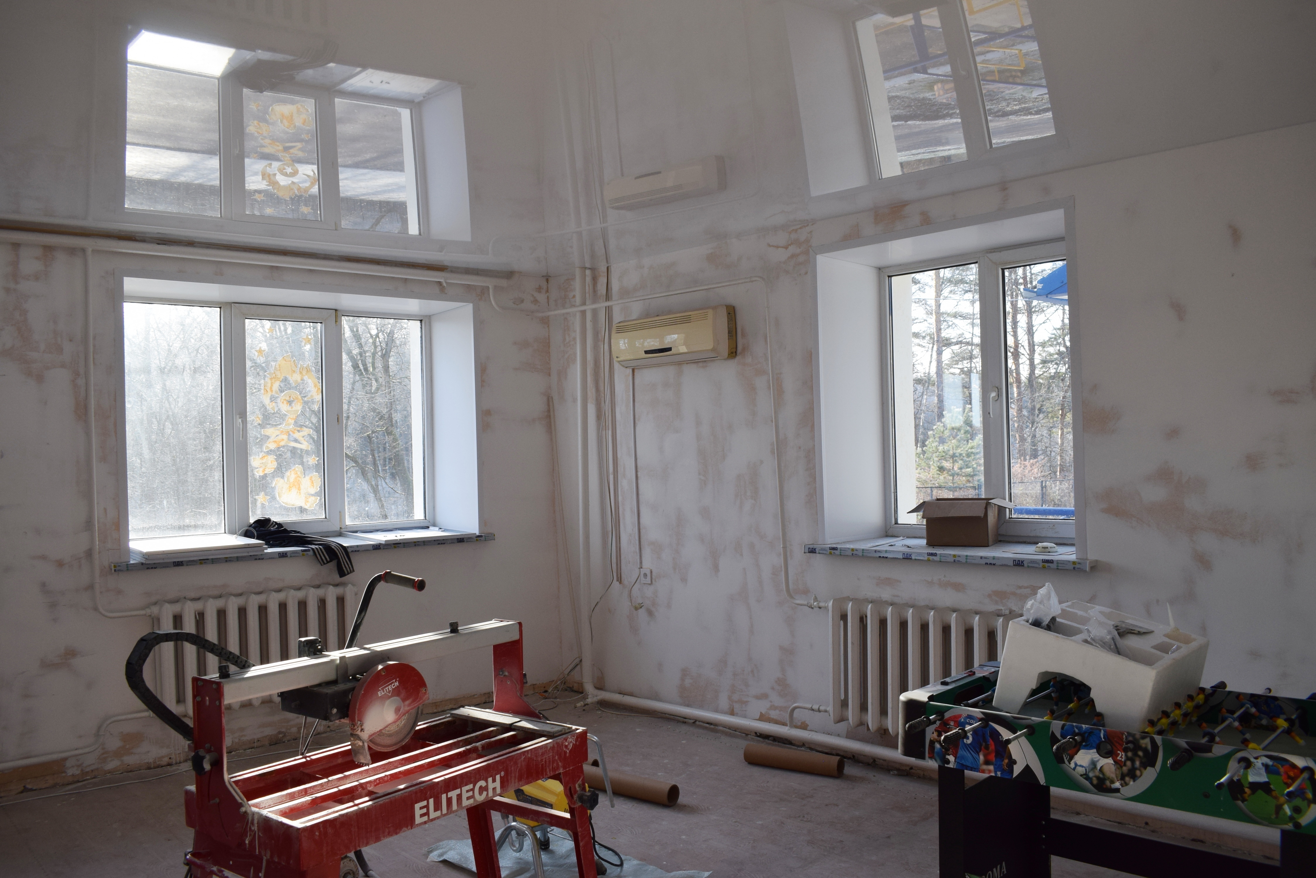 В комнате отдыха и тренажёрном зале установлен натяжной потолок, покрашены стены и произведена замена напольного покрытия. В коридоре произведена замена плитки на полу, а потолок и стены подлежат покраске.