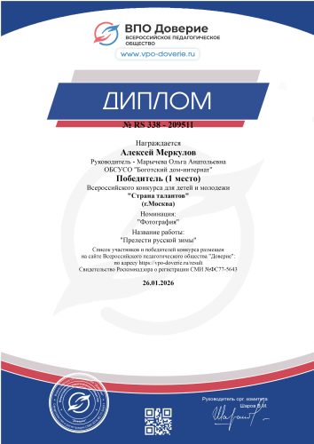 Участие Алексея Меркулова во Всероссийском конкурсе — яркий пример того, как творчество, увлечённость и использование современных возможностей, помогают раскрывать таланты и делиться своим уникальным видением мира.