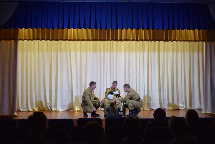 Особенностью мероприятия стал пронзительный спектакль «Я помню всё, как это было», подготовленный и исполненный жителями интерната участниками театральной студии «Пигмалион». На сцене разыгралась драматичная история экипажа танка, вступившего в смертельную схватку с противником. Артисты не просто играли роли – через эмоции и действия они смогли передать всю глубину переживаний: стойкость духа и несгибаемый характер перед лицом опасности, трагическую безысходность и, в то же время, верность долгу и взаимовыручку, когда на помощь приходят товарищи.