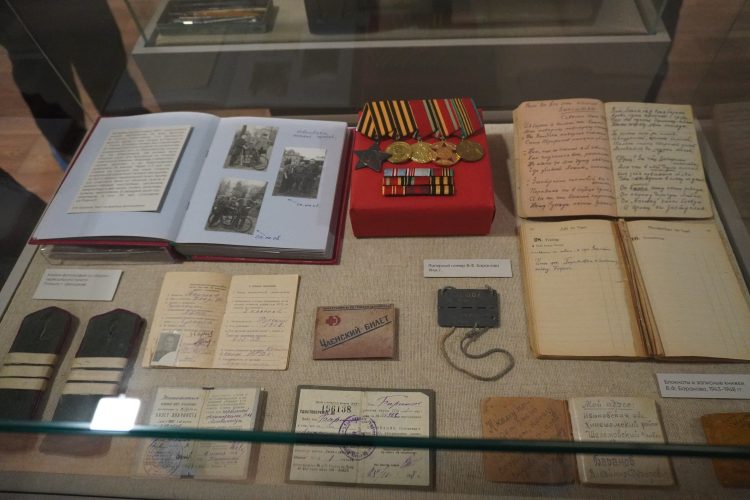 Экскурсовод подробно рассказала слушателям о музейной экспозиции, что это часть большого проекта получившего поддержку Президентского фонда культурных инициатив. Главным же результатом проектной работы является издание книги, публикующей дневники В.Ф. Баранова весны-лета 1945 года, воспоминания и фотографии из личного архива.