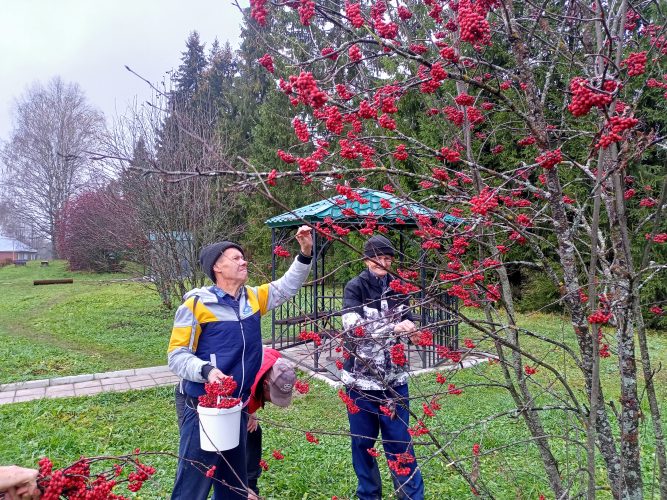 После ознакомления с информацией о методах подкормки птиц в холодное время года, проживающие граждане с энтузиазмом приступили к выполнению задачи. Они с удовольствием занимались сбором ягод рябины.